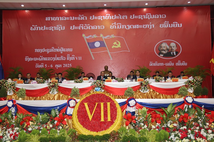 ກອງປະຊຸມໃຫຍ່ຜູ້ແທນອົງຄະນະພັກ ແຂວງບໍ່ແກ້ວ ຄັ້ງທີ VII ໄດ້ໄຂຂຶ້ນຢ່າງເປັນທາງການ ຢູ່ທີ່ສະໂມສອນແຂວງບໍ່ແກ້ວ ໃນລະຫວ່າງວັນທີ 5-6 ຕຸລາ 2025, ພາຍໃຕ້ການເປັນປະທານຂອງ ສະຫາຍ ພົຈວ ແປ້ນຄຳ ບຸດຈັນແພງ ຮັກສາການເລຂາຄະນະບໍລິຫານງານພັກແຂວງບໍ່ແກ້ວ; ໃຫ້ກຽດເຂົ້າຮ່ວມໂດຍ ສະຫາຍ ພົອ ວິໄລ ຫຼ້າຄຳຟອງ ກໍາມະການກົມການເມືອງສູນກາງພັກ ຮອງນາຍົກລັດຖະມົນຕີ ລັດຖະມົນຕີກະຊວງປ້ອງກັນຄວາມສະຫງົບ; ສະມາຊິກພັກອາວຸໂສບຳນານ, ແຂກຖືກເຊີນ ແລະ ຜູ້ແທນສົມບູນ 235 ສະຫາຍ ຍິງ 25 ສະຫາຍ ທີ່ເປັນຕົວແທນໃຫ້ສະມາຊິກພັກທົ່ວແຂວງບໍ່ແກ້ວ ທັງໝົດຈໍານວນ 11.205 ສະຫາຍ.