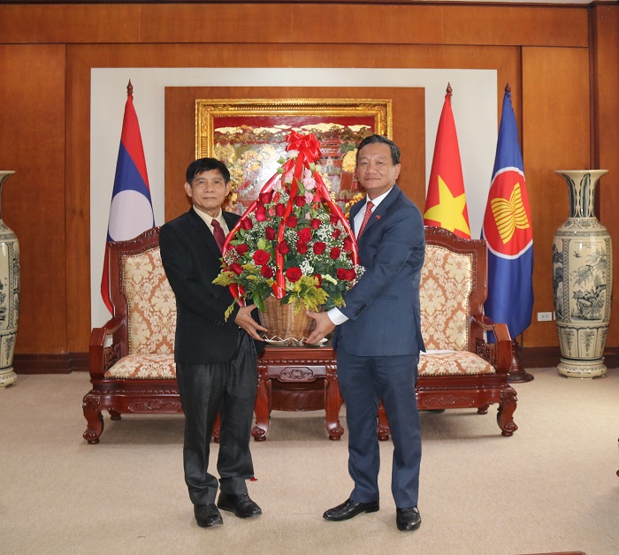 ໃນວັນທີ 19 ສິງຫາ 2025 ທີ່ສະຖານເອກອັກຄະລັດຖະທູດ ສສ ຫວຽດນາມ ປະຈໍາ ສປປ ລາວ, ສະຫາຍ ປອ. ວິສຸກ ພົມພິທັກ ຮອງຫົວໜ້າ ຄຈສພ ພ້ອມດ້ວຍຄະນະ ໄດ້ເຂົ້າອວຍພອນ ສະຫາຍ ຫງວຽນ ມິງ ເຕິມ ເອກອັກຄະລັດຖະທູດວິສາມັນ ຜູ້ມີອຳນາດເຕັມ ແຫ່ງ ສສ ຫວຽດນາມ ປະຈໍາ ສປປ ລາວ ເນື່ອງໃນໂອກາດວັນຊາດ ສາທາລະນະລັດສັງຄົມນິຍົມ ຫວຽດນາມ ຄົບຮອບ 80 ປີ (2/9/1945 - 2/9/2025) ແລະ ວັນການທູດຫວຽດນາມ ຄົບຮອບ 80 ປີ (28/08/1945 - 28/08/2025).